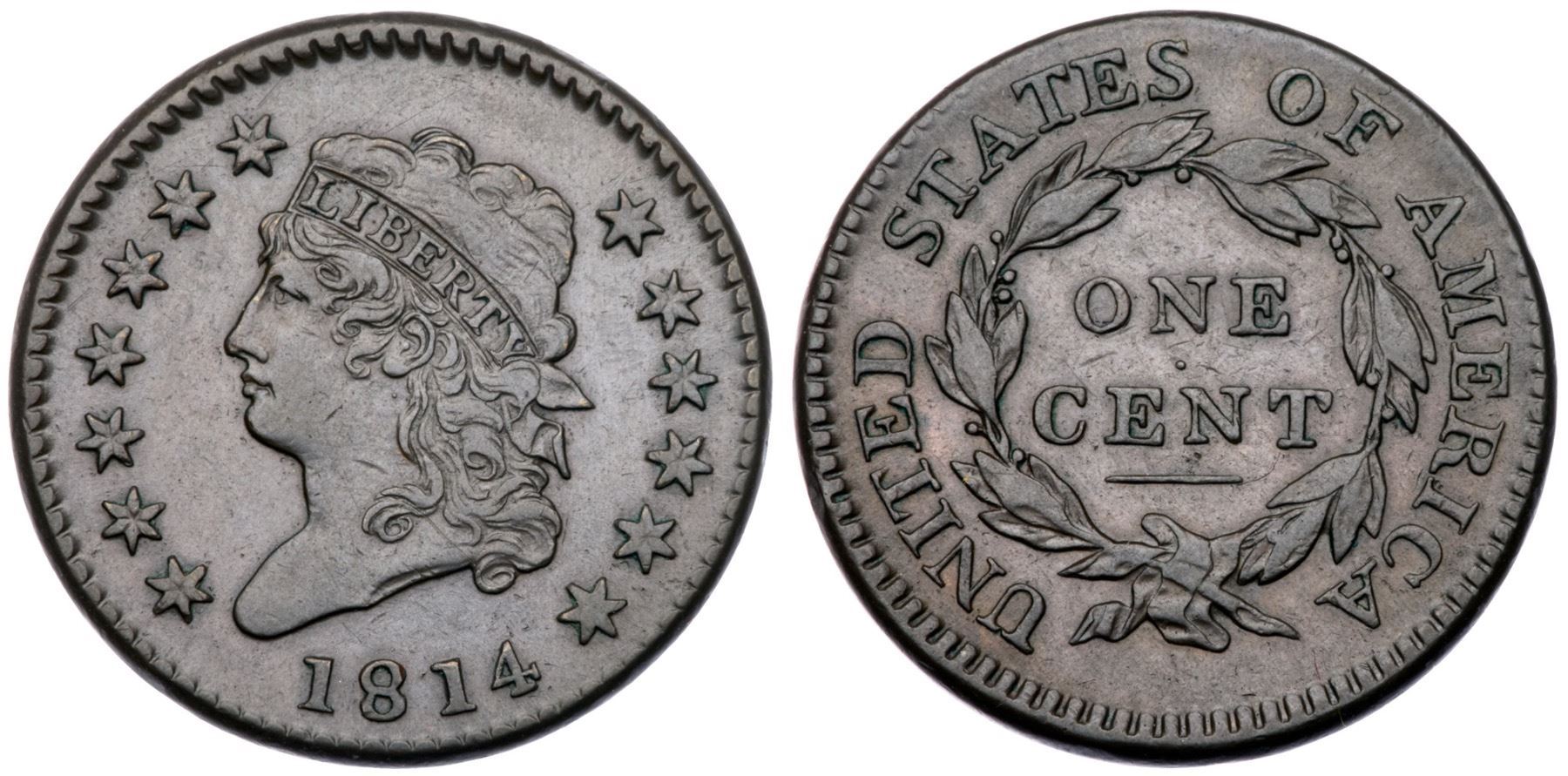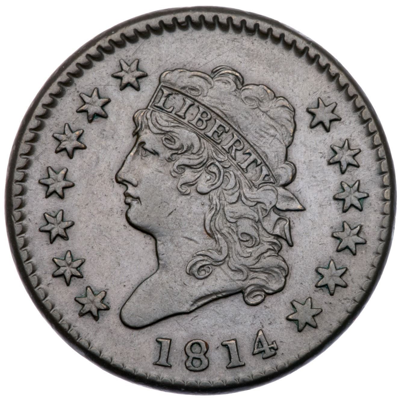 1814 S-294 R1 Crosslet 4 VF30Slightly sharper with smooth surfaces and very nice eye appeal, but there is a light scratch through the curl on the neck. Glossy brown and light chocolate. Nicely struck MDS, Breen state II, with light die clashmarks.Certificate Number: Pedigree: Ex Ted Kress-Fred H. Borcherdt Collection