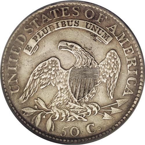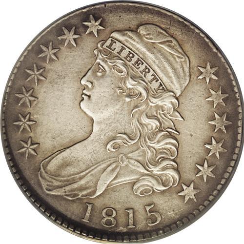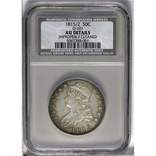 <B>1815/2<50C>--Improperly Cleaned--NCS. AU Details.</B></I> O-101, R.2. The surfaces are quite dull from the obvious harsh cleaning. The centers exhibit a steel-gray appearance while deeper brown tones circle the borders. A few wispy hairlines and noteworthy die clash marks show in the field areas. A bit irregularly struck with some of the peripheral stars weak and others fully defined. Noticeably die clashed in the reverse fields. Always an important offering as there is only the one variety this year, placing heavy demand on this issue by both date and variety collectors.