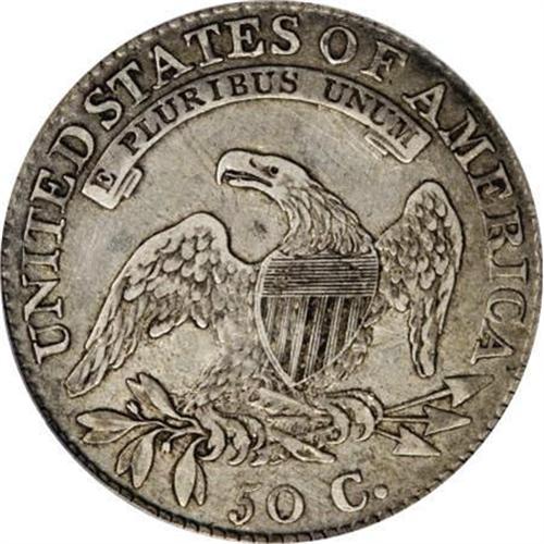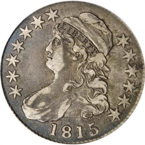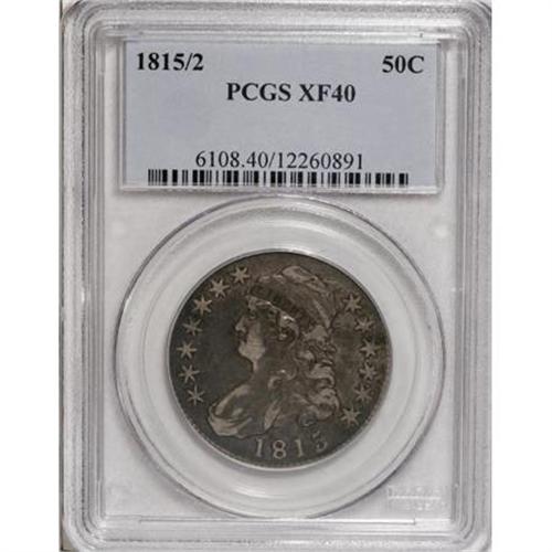 <B>1815/2 50C XF40 PCGS.</B></I> O-101, R.2. There are 1815 halves and then there are attractive 1815 halves. The current coin falls well within the latter category, with light gray coloration on the raised devices framed by a rich, medium gunmetal tone elsewhere. When rotated slightly the obverse displays a steel-blue hue. Clash marks are noted on the lightly toned reverse. The combined demand for 1815 halves by type, date and variety collectors has dwindled the available supply of original, problem-free examples in recent years. Worthy of a premium bid.<BR><BR><B>Coin Engraver:</B> John Reich<BR><BR><b>Shipping:</b> Coins & Currency (<a target="_blank" href="http://www.heritageauctions.com/common/shipping.php">view shipping information</a>)