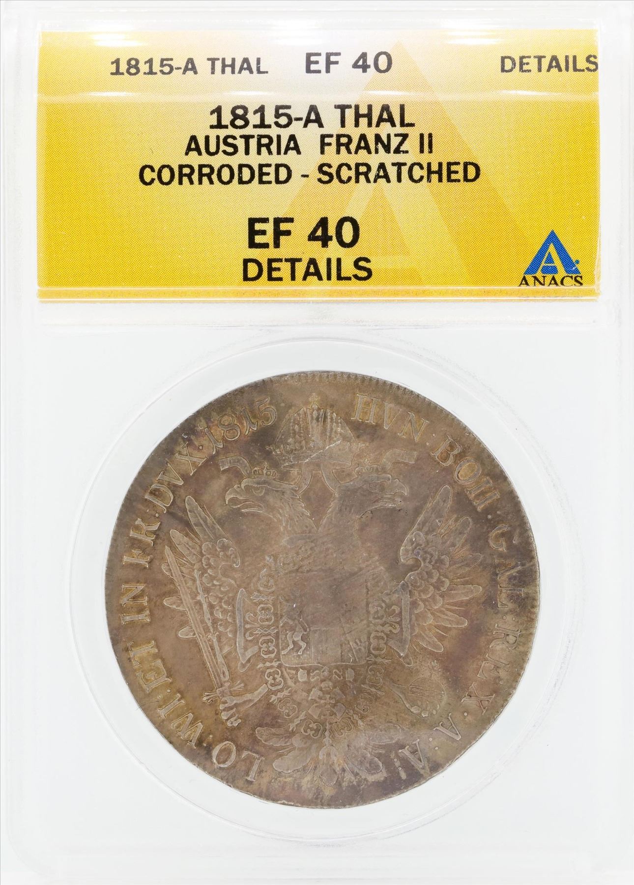 One 1815-A Thal Autria Franz II Corroded Scratched Coin ANACS EF40 Details.