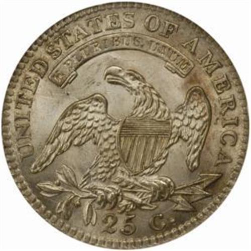 <style type="text/css"> body, td, th { font-family: Arial, Helvetica, sans-serif; font-size: 12px; color: #482424; margin: 0px; padding: 0px; } #header { background-image: url(http://www.bowersandmerena.com/ebay/images/template_v3_01.gif); clear: both; background-color: #590303; border-top-width: 2px; border-top-style: solid; border-top-color: #B38C4F;}#header #header_wrapper { height: 75px; clear: both; width: 800px; margin-right: auto; margin-left: auto; background-image: url(http://www.bowersandmerena.com/ebay/images/template_v3_03.gif); background-repeat: no-repeat; background-position: right; color: #F3EDCC;}#header #header_wrapper #header_logo { float: left; height: 75px; width: 444px; background-image: url(http://www.bowersandmerena.com/ebay/images/template_v3_02.gif); background-repeat: no-repeat; font-size: 10px; text-transform: capitalize; color: #B38C4F;}#header #header_wrapper #header_right { float: left; height: 75px; width: 356px; text-align: right;}#header #header_wrapper #header_right #headerLoginBtn { margin-bottom: 30px;}#header #header_wrapper #header_right input#txtSearch { color: #B49056; border: 1px solid #B49056; width: 175px; padding-top: 3px; padding-right: 3px; padding-bottom: 4px; padding-left: 3px;}#nav { height: 37px; background-image: url(http://www.bowersandmerena.com/ebay/images/template_v3_05.gif); clear: both;}#nav #nav_wrapper { height: 35px; width: 800px; margin-right: auto; margin-left: auto; border-left-width: 1px; border-left-style: solid; border-left-color: #B38C4F;}#nav #nav_wrapper a { padding-right: 15px; padding-left: 15px; border-right-width: 1px; border-right-style: solid; border-right-color: #B38C4F; height: 25px; padding-top: 10px; display: block; float: left; text-decoration: none; font-weight: bold; color: #5D0303;}#nav #nav_wrapper a:hover { color: #B38C4F;}#nav #nav_wrapper #search { float: right; padding-top: 7px;}#nav #nav_wrapper #search #txtSearch { font-family: Arial, Helvetica, sans-serif; font-size: 10px; text-transform: uppercase; color: #D2AE75; border: 1px solid #B38C4F; padding: 3px;}#content_bgd { background-image: url(http://www.bowersandmerena.com/ebay/images/template_v3_09.gif); background-repeat: repeat-y; background-position: center; padding-top: 15px; padding-bottom: 15px; background-color: #FBFBDB;}#content_wrapper { clear: both; height: auto; width: 800px; margin-right: auto; margin-left: auto;}.LotDetailWhite{ line-height:normal; font-size:13px; font-family: arial,helvetica,sans-serif; color: White; font-weight: bold;}.LotDetailInformation{ line-height:normal; font-size: 13px; font-family: arial,helvetica,sans-serif;}.LotDetailMessage{ line-height:normal; font-size: 13px; font-family: arial,helvetica,sans-serif; color: red;}}tr.HeaderAuctionTitle td { color: #000000; font-weight: bold; padding: 2px; background-image: url(http://www.bowersandmerena.com/ebay/images/template_v3_05.gif); background-repeat: repeat-x; border-bottom-width: 1px; border-bottom-style: solid; border-bottom-color: #B38C4F;}table.AuctionSummary a, table.AuctionSummary a:link, table.AuctionSummary a:visited { color: #0000FF; text-decoration: none;}}td.tableHeaderLeft { border-left-width: 1px; border-left-style: solid; border-left-color: #B38C4F;}td.tableHeaderRight { border-right-width: 1px; border-right-style: solid; border-right-color: #B38C4F;}td.tableCellMiddle { border-left-width: 1px; border-left-style: solid; border-left-color: #B38C4F; border-right-width: 1px; border-right-style: solid; border-right-color: #B38C4F; padding: 5px;}tr.footer td { border-top-width: 1px; border-top-style: solid; border-top-color: #B38C4F;}</style></head><body><div id="header"> <div id="header_wrapper"> <div id="header_logo"> </div> <div id="header_right"> </div> </div></div><div id="nav"> <div id="nav_wrapper"> <a href="http://www.bowersandmerena.com">Our eBayLive Auctions</a> <a href="#PaymentInfo">Payment Information</a> <a href="#ShippingInfo">Shipping Information</a> <a href="#About">About Bowers and Merena</a> </div></div><div id="content_bgd"> <div id="content_wrapper"> <table width="100%" border="0" cellpadding="5" cellspacing="0" class="AuctionSummary"> <tbody> <tr class="HeaderAuctionTitle" style="height: 25px;"> <td align="left" class="tableHeaderLeft" > </td> <td align="center" class="tableHeaderRight"> <span style="font-size: large;">Lot #498. 1815 Capped Bust Quarter. B-1, the only known dies. Rarity-1. MS-63 (NGC).</span> </td> </tr> <tr> <td colspan="3" class="tableCellMiddle"> The first Quarter struck in the United States Mint since 1807, the 1815 introduced the Large Size Capped Bust series with a mintage of approximately 89,235 pieces. No more coins of this denomination were struck until 1818, another indication of the unpopularity of the Quarter among bullion depositors that were active in the United States during the 1790s and early decades of the 19th century. With full, satiny luster and relatively few abrasions scattered about, this Choice example would fit nicely into a Mint State type set. There are no areas of bothersome lack of detail, and the surfaces are brilliant save for a bit of light, pinkish-copper iridescence that is largely confined to the protected areas around the devices. An important Uncirculated representative of one of the most underrated types in the entire U.S. silver-coin series.