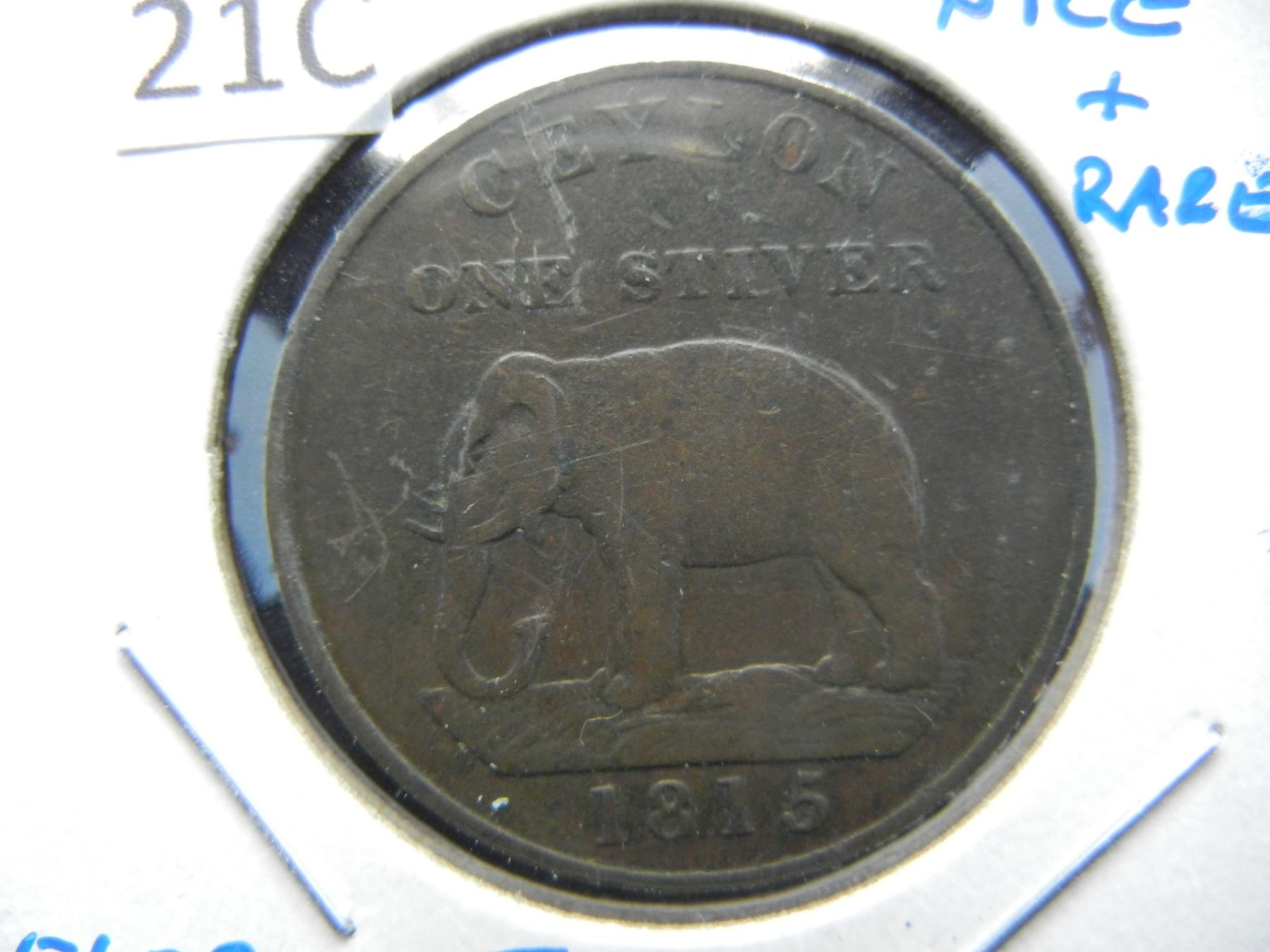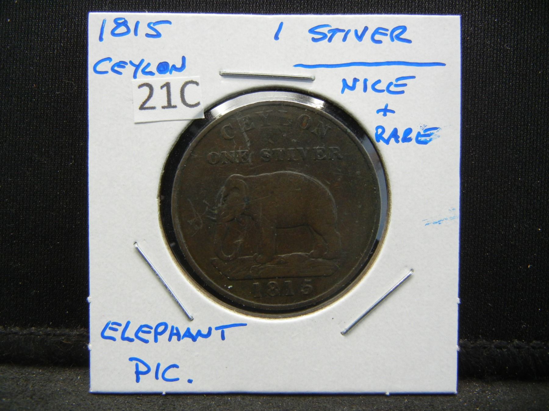 1815 Ceylon 1 Stiver. Nice & Rare. Elephant Picture.