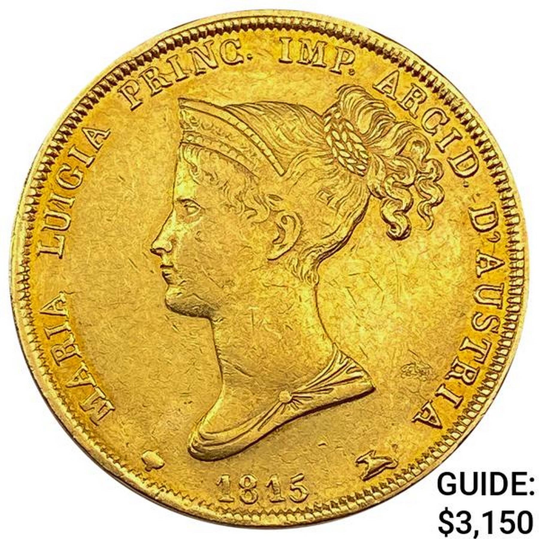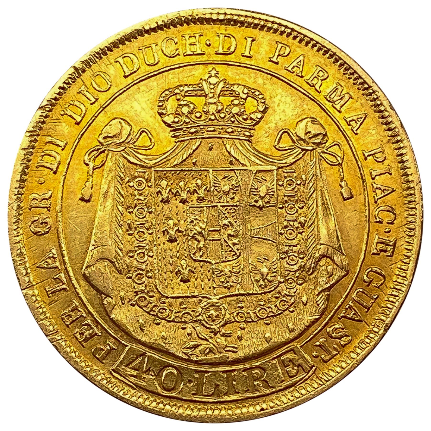 1815 Italy Gold Parma 40 Lire .373 AGW CLOSELY UNCIRCULATED