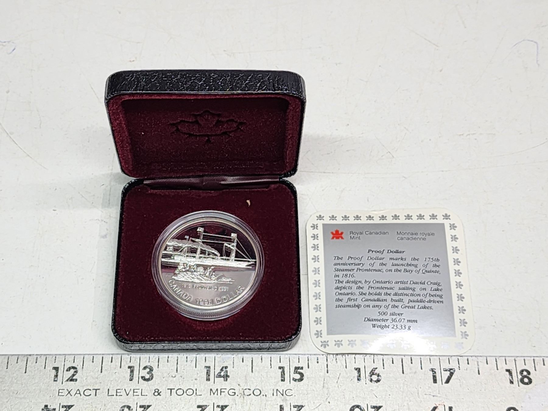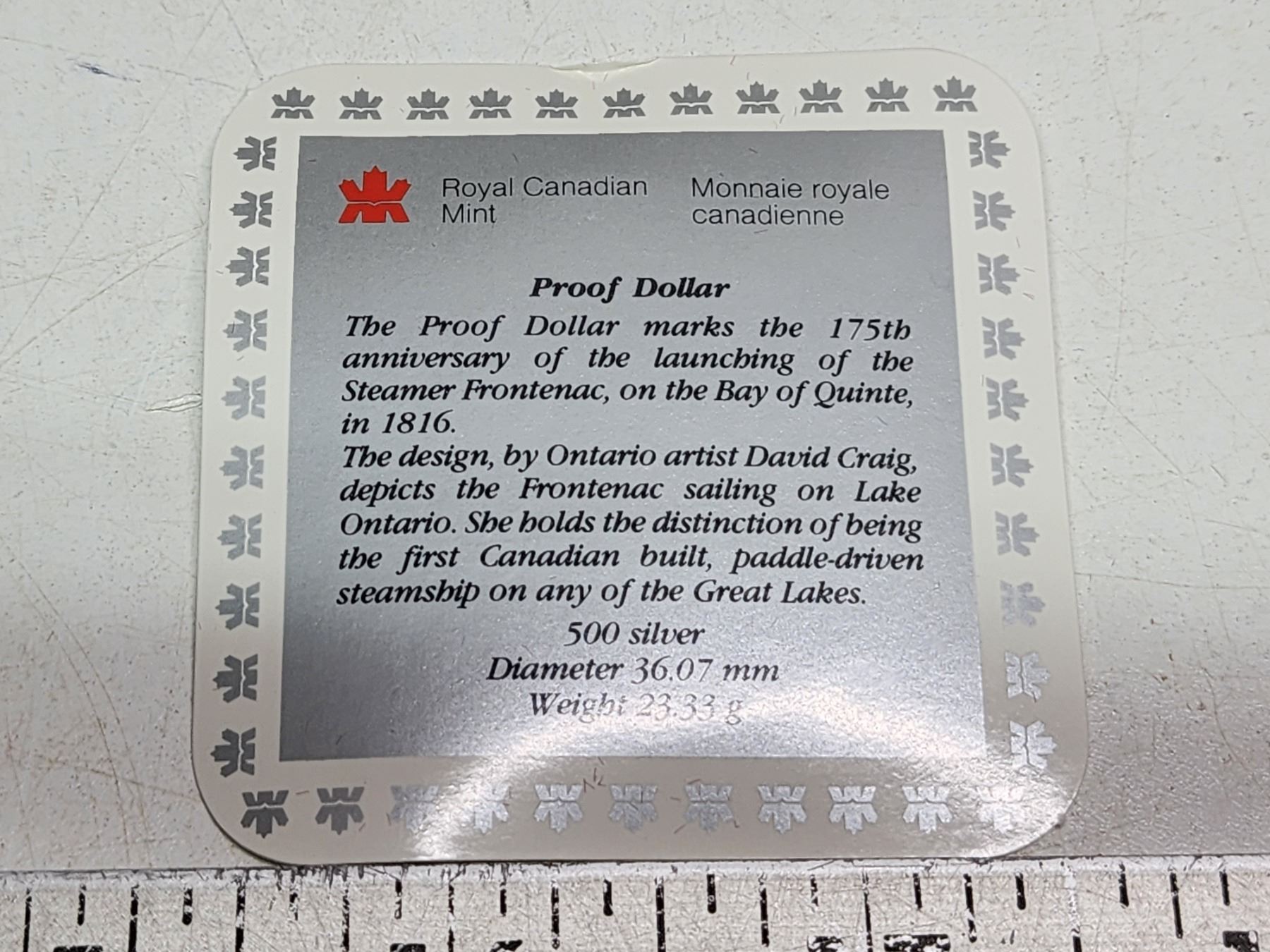 1816-1991 "Frontenac", Canadian silver dollar, in case