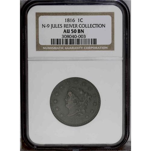 1816 1C AU50 NGC. N-9, Low R.3. While repunching is se 1816[1C] N-9, Low R.3. AU50 NGC. XF40 EAC.