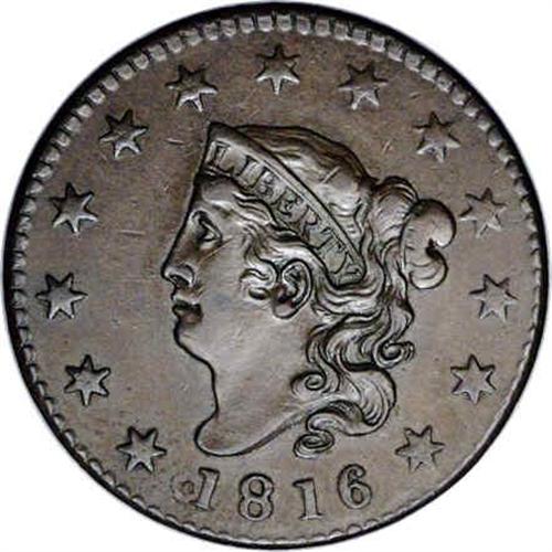 1816 1C AU58 NGC. N-4, Low R.3. The earliest die state 1816[1C] N-4, Low R.3. AU58 NGC. VF30 EAC.