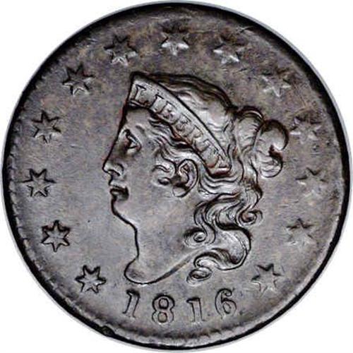 1816 1C AU58 NGC. N-4, Low R.3. This late die state no 1816[1C] N-4, Low R.3. AU58 NGC. VF35 EAC.