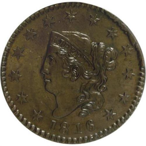 <B>1816 1C Brown--Cleaned--ANACS. MS60 Details.</B></I> NGC Census: (1/114). PCGS Population (2/98). Mintage: 2,820,982. Numismedia Wsl. Price for NGC/PCGS coin in MS60: $333. (#1591)<BR><BR><B>Coin Engraver:</B> Robert Scot or John Reich<BR><BR><b>Shipping:</b> Coins & Currency (<a target="_blank" href="http://www.heritageauctions.com/common/shipping.php">view shipping information</a>)