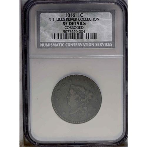 1816 1C --Corroded--NCS. XF Details. N-1, R.5. An inter 1816[1C] N-1, R.5--Corroded--NCS. XF Details