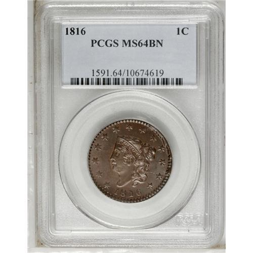 1816 1C MS64 Brown PCGS. N-2, Intermediate Die State,