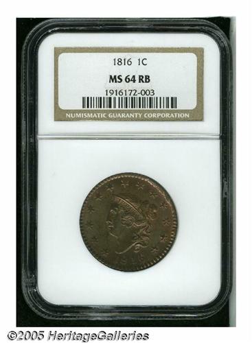 1816 1C MS64 Red and Brown NGC. N-2, R.1. This lu