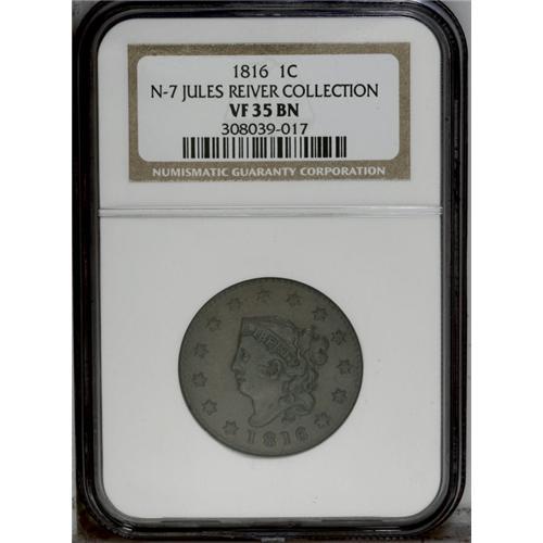 1816 1C VF35 NGC. N-7, R.1. This early die state shows 1816[1C] N-7, R.1. VF35 NGC. VF30 EAC.