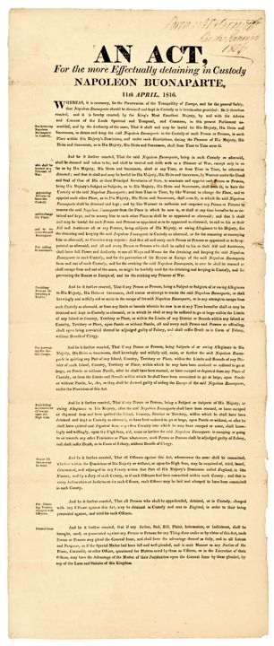 Historic Letterpress Printed Broadside “...Act for the More Effectually Detaining in Custody Napoleon Buonaparte,...”