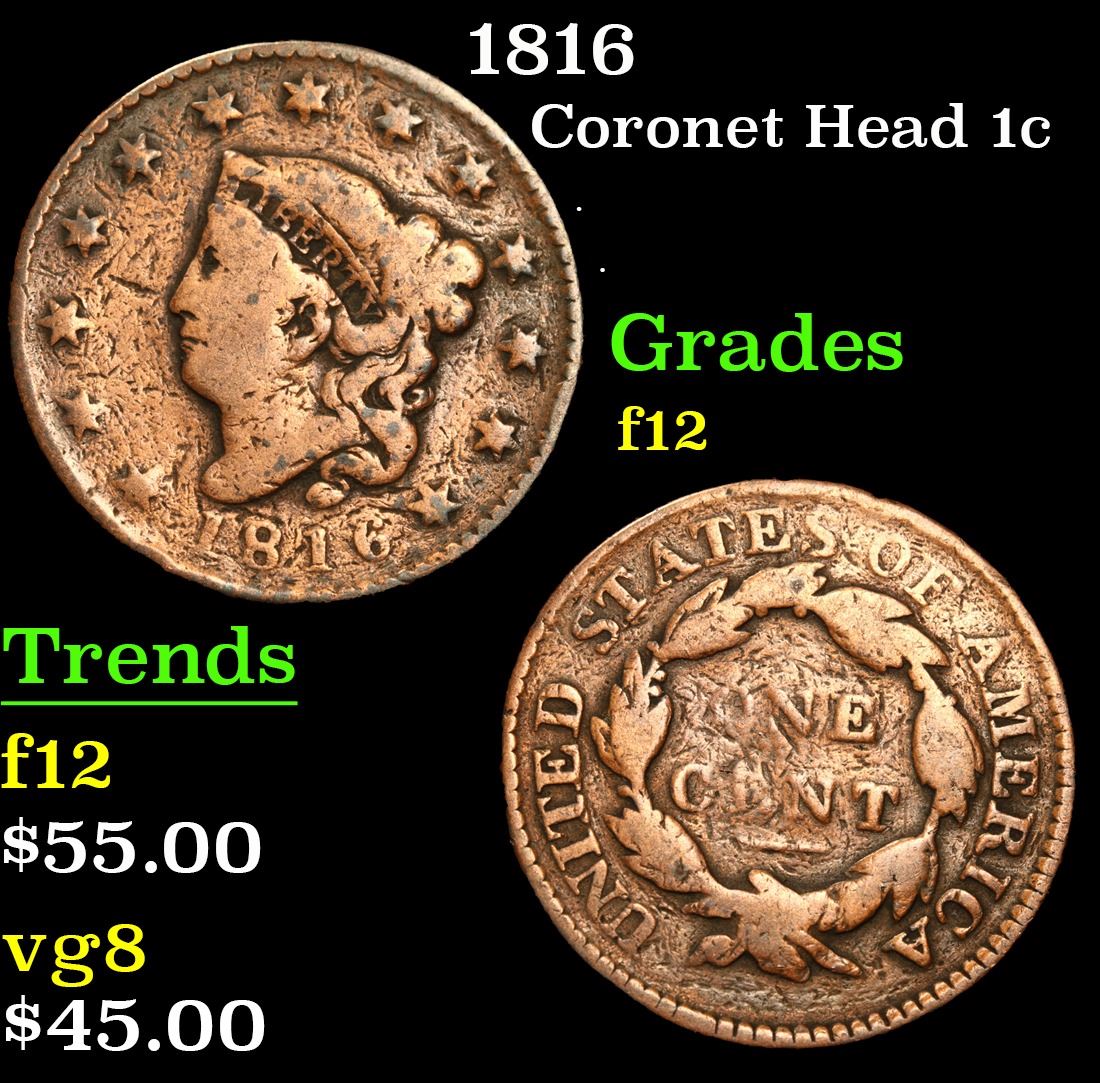 1816 . . Coronet Head Large Cent 1c Grades f, fine.