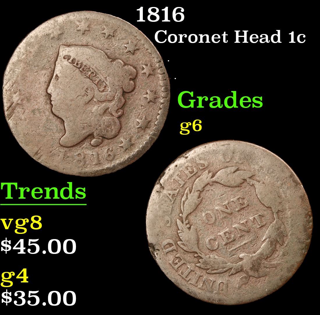 1816 . . Coronet Head Large Cent 1c Grades g+.