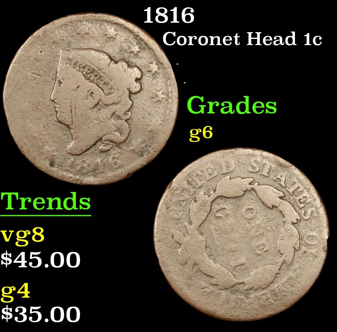 1816 . . Coronet Head Large Cent 1c Grades g+.