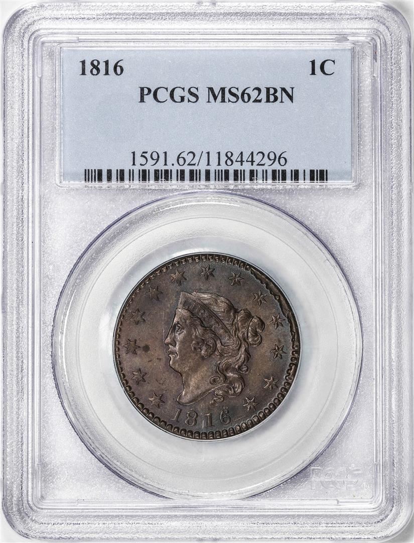 One 1816 Coronet Head Large Cent Coin PCGS MS62BN. PCGS Graded.