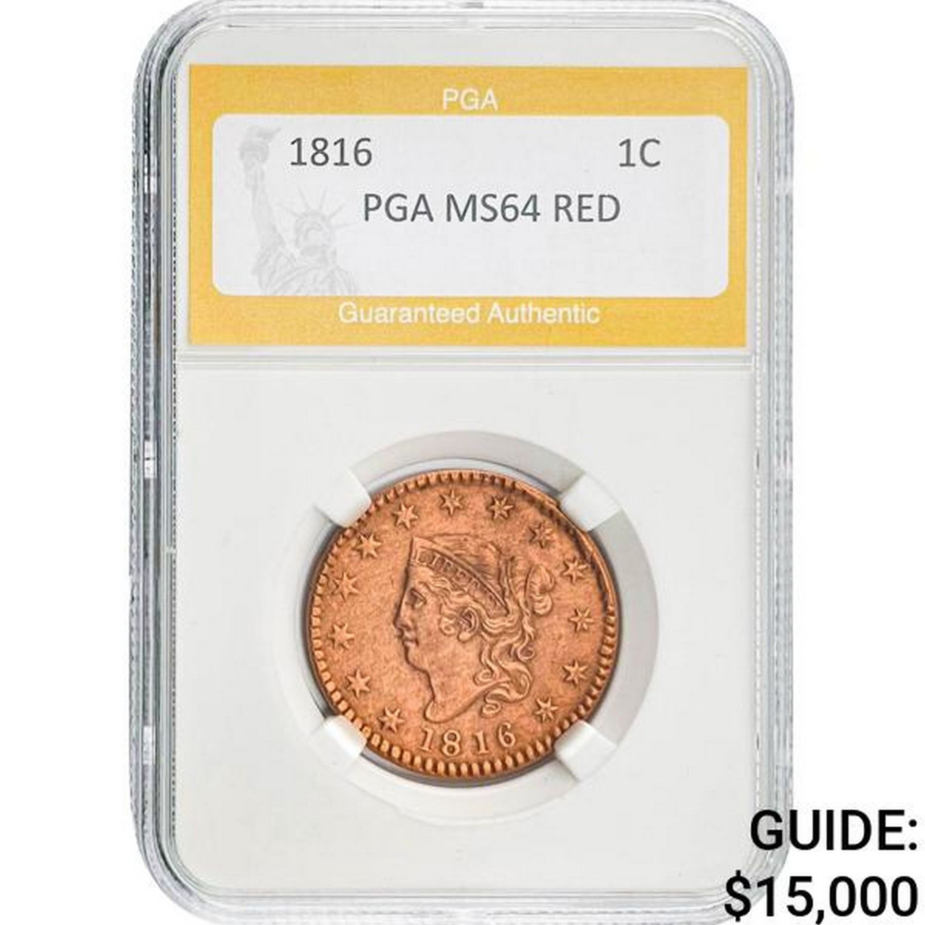 1816 Large Cent PGA MS64 RED