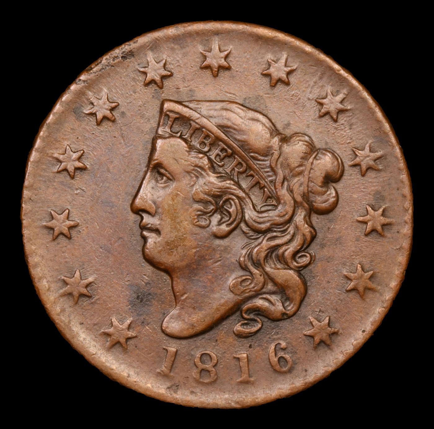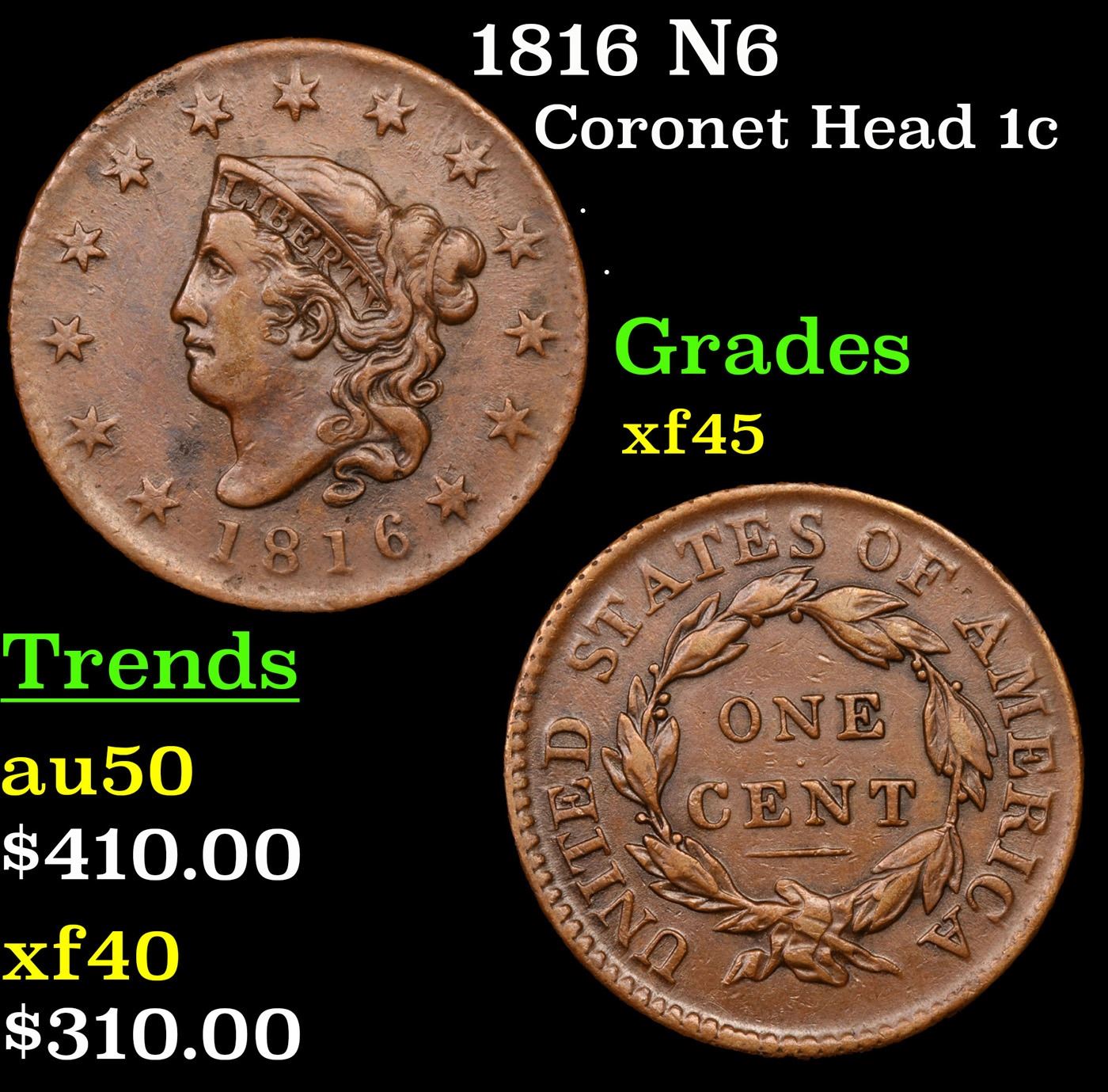 1816 N6 Coronet Head Large Cent 1c Grades xf+.