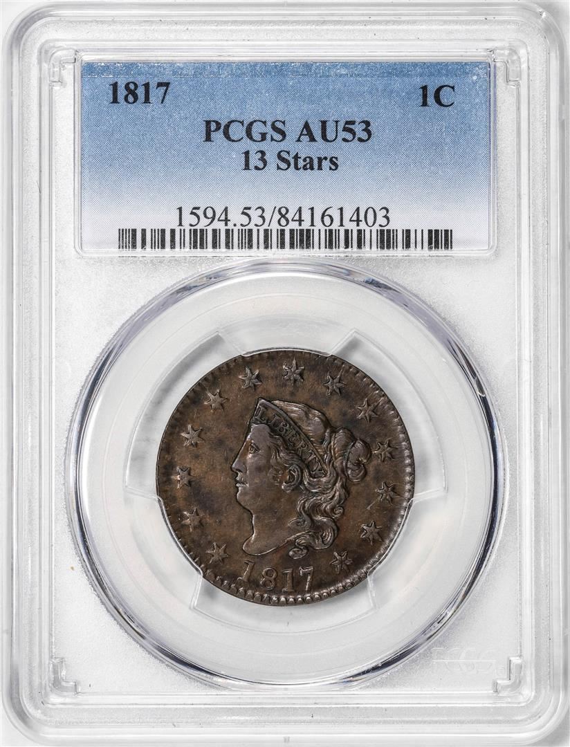 One 1817 13 Stars Coronet Head Large Cent Coin PCGS AU53. PCGS Graded.