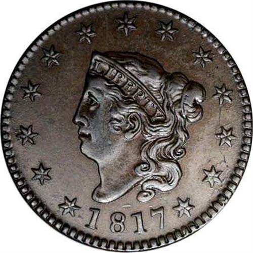 <B>1817<1C> 13 Stars. N-10, R.1. AU55 NGC. XF45 EAC.</B></I> Early die state. Brown with glossy, smooth surfaces. No distractions. A faint planchet lamination meanders through the right stars.<BR><I>Ex: George Ramont (4/1967).</B></I> Envelope Included.