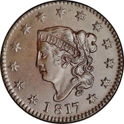 1817 1C 13 Stars AU58 NGC. N-15, R.4. Reddish-brown wi 1817[1C] 13 Stars. N-15, R.4. AU58 NGC. XF45
