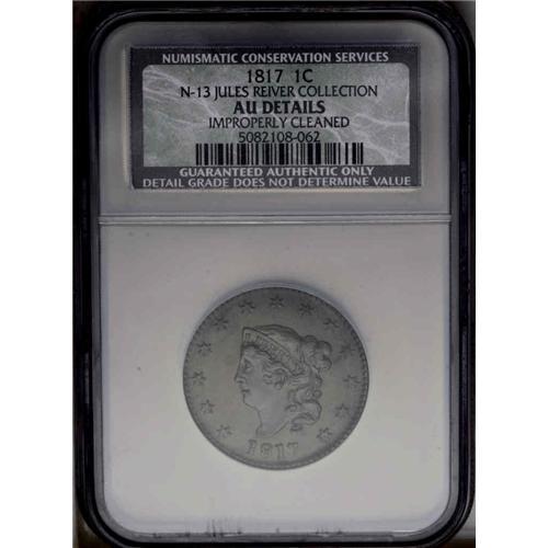 1817 1C 13 Stars--Improperly Cleaned--NCS. 1817[1C] 13 Stars. N-13, R.1--Improperly Cleaned--NCS. AU