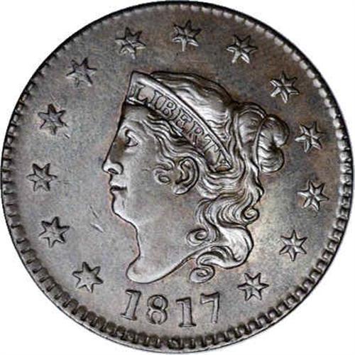 1817 1C 13 Stars. N-3, R.2. MS61 Brown NGC. AU50 EAC. 1817[1C] 13 Stars. N-3, R.2. MS61 Brown NGC. A