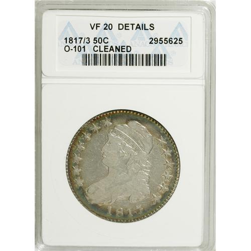 <B>1817/3 50C --Cleaned--ANACS. VF20 Details.</B></I> O-101. NGC Census: (28/141). PCGS Population (2/104). Numismedia Wsl. Price: $333. (#6111)<BR><BR><b>Shipping:</b> Coins & Currency (<a target="_blank" href="http://www.heritageauctions.com/common/shipping.php">view shipping information</a>)