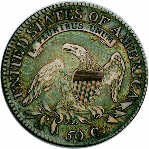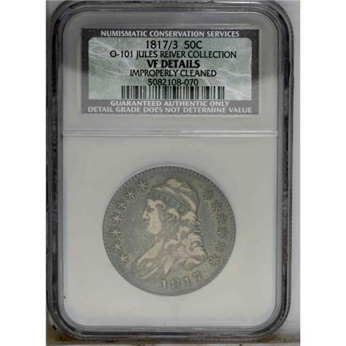 <B>1817/3<50C>--Improperly Cleaned--NCS. VF Details.</B></I> O-101, R.2. A popular overdate due to its easy visibility, even without magnification. Fine hairlines are noted on the light to medium gray surfaces. A small linear mark is visible to the left of the ear. Envelope Included.