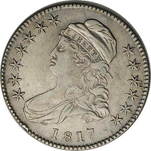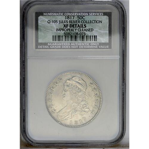 <B>1817<50C>--Improperly Cleaned--NCS. XF Details.</B></I> O-104, R.6. This variety is most easily attributed by what it lacks; that is, the progressive die breaks seen on O-104a. The fields are bright and were probably reflective prior to cleaning, but light hairlining has given the coin an even brighter appearance. Just the slightest bit of light gray patina is seen scattered over each side. Sharply struck, except on the highpoints of the hair, as always on this variety.<BR><I>Ex: Stack's (4/1987), lot 591.</B></I> Envelope Included.