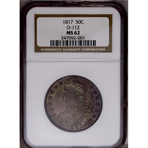 1817 50C MS62 NGC. O-112, R.2. Vertical die lines near 1817[50C] MS62 NGC.