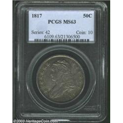 <TABLE cellSpacing=0 cellPadding=0 width="100%" bgColor=#000000 border=0><TBODY><TR><TD width="100%"><TABLE cellSpacing=1 cellPadding=3 width="100%" border=0><TBODY><TR><TD width="100%" bgColor=#79735c><FONT face=arial color=#ffffff size=3><B>Description</B> </FONT></TD></TR><TR><TD width="100%" bgColor=#ffffff><FONT face=arial size=2><B>1817 50C MS63 PCGS.</B></I> O-110, R.2. A triple denticle above star 13 attributes the variety. Apple-green, lavender, and powder-blue patina. A sharply struck example with good luster. A faint pinscratch below Liberty's ear, but otherwise well preserved. Population: 14 in 63, 10 finer (4/03). </FONT></TD></TR></TBODY></TABLE></TD></TR></TBODY></TABLE><BR><A name=PricesRealized></A><TABLE cellSpacing=0 cellPadding=0 width="100%" bgColor=#000000 border=0><TBODY><TR><TD width="100%"><TABLE cellSpacing=1 cellPadding=3 width="100%" border=0><TBODY><TR><TD width="100%" bgColor=#79735c><A name=PR><FONT face=arial color=#ffffff size=3><B>Previous Prices from Heritage Auctions</B> </FONT></A></TD></TR><TR><TD bgColor=#f6f6ed><TABLE cellSpacing=0 cellPadding=0 width="100%" border=1><TBODY><TR><TD align=middle width="33%"><B>Date</B></TD><TD align=middle width="33%"><B>Service</B></TD><TD align=middle width="33%"><B>Price</B></TD></TR><TR bgColor=whitesmoke><TD width="33%"><B>08/13/1999</B></TD><TD width="33%">PCGS</TD><TD width="33%">$1,610.00</TD></TR><TR bgColor=whitesmoke><TD width="33%"><B>07/01/1997</B></TD><TD width="33%">PCGS</TD><TD width="33%">$1,980.00</TD></TR><TR bgColor=whitesmoke><TD width="33%"><B>08/08/2001</B></TD><TD width="33%">NGC</TD><TD width="33%">$1,955.00</TD></TR><TR bgColor=whitesmoke><TD width="33%"><B>09/10/1993</B></TD><TD width="33%">NGC</TD><TD width="33%">$1,540.00</TD></TR><TR bgColor=whitesmoke><TD width="33%"><B>09/01/1997</B></TD><TD width="33%">NGC</TD><TD width="33%">$1,540.00</TD></TR><TR bgColor=whitesmoke><TD width="33%"><B>07/01/1997</B></TD><TD width="33%">NGC</TD><TD width="33%">$1,540.00</TD></TR></TBODY></TABLE></TD></TR><TR><TD bgColor=#ffffff><FONT face=arial size=1 ?>PLEASE NOTE: All prices realized reflect the final hammer price PLUS the buyer's premium in auctions that charge a buyer's premium. Each item has a notation at the top of the listing indicating whether that lot included a buyer's premium. Example: A item that sells with a final hammer price of $100 and a 20% buyer's premium will display with a price realized of $120. All information listed is intended to be as accurate as possible, but errors are possible. Please use this guide carefully and inform us of any inaccuracies. </FONT></TD></TR></TBODY></TABLE></TD></TR></TBODY></TABLE><BR><TABLE cellSpacing=0 cellPadding=0 width="100%" bgColor=#000000 border=0><TBODY><TR><TD width="100%"><TABLE cellSpacing=1 cellPadding=3 width="100%" border=0><TBODY><TR><TD width="100%" bgColor=#79735c colSpan=6><FONT face=arial color=#ffffff size=3><B>Price Guide*</B> </FONT></TD></TR><TR bgColor=#f6f6ed><TD align=middle><B>Grade</B> </TD><TD align=middle><B>Coin World<BR>(Trends)</B> </TD><TD align=middle><B>Numismedia<BR>Retail</B> </TD><TD align=middle><B>Numismedia<BR>Wholesale</B> </TD><TD align=middle><B>Coin<BR>Universe</B> </TD><TD align=middle><B>Heritage<BR>Value Index</B> </TD></TR><TR bgColor=#ffffff><TD align=middle>62</TD><TD align=right>$2,050.00</TD><TD align=right>---</TD><TD align=right>$1,575.00</TD><TD align=right>$1,025.00</TD><TD align=right>$1,107.50</TD></TR><TR style="FONT-WEIGHT: bold" bgColor=#cccfdd><TD align=middle>63</TD><TD align=right>$2,900.00</TD><TD align=right>---</TD><TD align=right>$1,850.00</TD><TD align=right>$1,950.00</TD><TD align=right>$1,697.50</TD></TR><TR bgColor=#ffffff><TD align=middle>64</TD><TD align=right>$5,250.00</TD><TD align=right>---</TD><TD align=right>$3,450.00</TD><TD align=right>$5,000.00</TD><TD align=right>$3,741.67</TD></TR><TR bgColor=#ffffff><TD colSpan=6><FONT size=1>*All information listed is intended to be as accurate as possible, but errors are possible. No item may be returned or refused based on this information which is provided as a service to our customers. You should contact each pricing source directly to determine the accuracy of this information. </FONT></TD></TR></TBODY></TABLE></TD></TR></TBODY></TABLE><BR><TABLE cellSpacing=0 cellPadding=0 width="100%" bgColor=#000000 border=0><TBODY><TR><TD width="100%"><TABLE cellSpacing=1 cellPadding=3 width="100%" border=0><TBODY><TR><TD width="100%" bgColor=#79735c><FONT face=arial color=#ffffff size=3><B>Population Guide</B> </FONT></TD></TR><TR bgColor=#ffffff><TD align=middle><!-- Begin Output of Population Grid--><TABLE cellSpacing=0 cellPadding=0 width="100%" border=0><TBODY><TR><TD vAlign=center><TABLE cellSpacing=0 width="100%" border=1 cellsadding="3"><TBODY><TR><TD vAlign=center><TABLE cellSpacing=0 cellPadding=3 width="100%" border=1><TBODY><TR><TD vAlign=center align=middle bgColor=#f0f1e8 colSpan=2 <CENTER><FONT face=Arial size=2><B>PCGS Pop </B></FONT><CENTER></CENTER></TD><TD vAlign=center align=middle bgColor=#f0f1e8 colSpan=2><CENTER><FONT face=Arial size=2><B>NGC Pop</B></CENTER></FONT></TD></TR><TR><TD vAlign=center><FONT face=Arial size=2>(63)</FONT> </TD><TD vAlign=center align=right><FONT face=Arial size=2>13</FONT> </TD><TD vAlign=center><FONT face=Arial size=2>(63)</FONT> </TD><TD vAlign=center align=right><FONT face=Arial size=2>18</FONT> </TD></TR><TR><TD vAlign=center><FONT face=Arial size=2>(>63)</FONT> </TD><TD vAlign=center align=right><FONT face=Arial size=2>10</FONT> </TD><TD vAlign=center><FONT face=Arial size=2>(>63)</FONT> </TD><TD vAlign=center align=right><FONT face=Arial size=2>18</FONT> </TD></TR></TBODY></TABLE></TD></TR></TBODY></TABLE></TD></TR></TBODY></TABLE><!-- End Output of Population Grid--> Important notice: Heritage usually auctions material at the rate of 200-250 lots per hour. On some occasions eBay Live bid software or the Internet may not be able to keep up with the pace of the auction. We recommend p