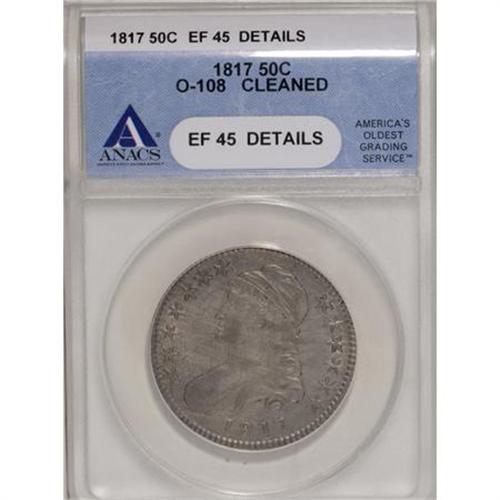 <B>1817 50C --Cleaned--ANACS.</B></I> <B>XF45 Details.</B></I> O-108. NGC Census: (37/225). PCGS Population (43/188). Mintage: 1,215,567. Numismedia Wsl. Price for NGC/PCGS coin in XF45: $278. (#6109)<BR><BR><B>Coin Engraver:</B> John Reich<BR><BR><b>Shipping:</b> Coins & Currency (<a target="_blank" href="http://www.heritageauctions.com/common/shipping.php">view shipping information</a>)