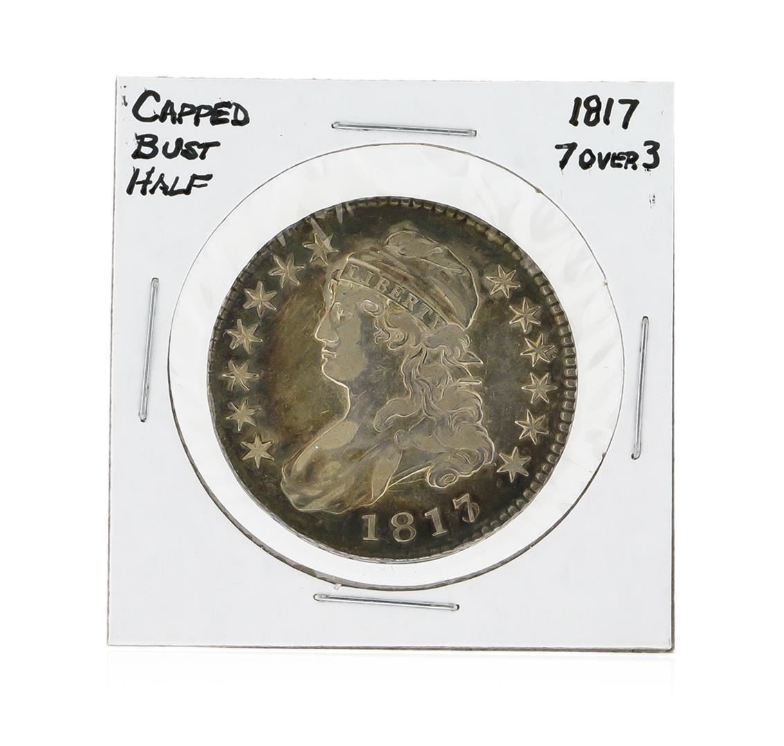 One 1817 7 over 3 Capped Bust Half Dollar Coin.