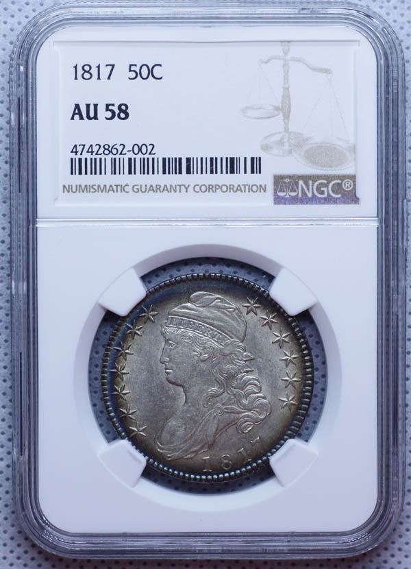 1817 Capped Bust Half Dollar. NGC graded AU-58.