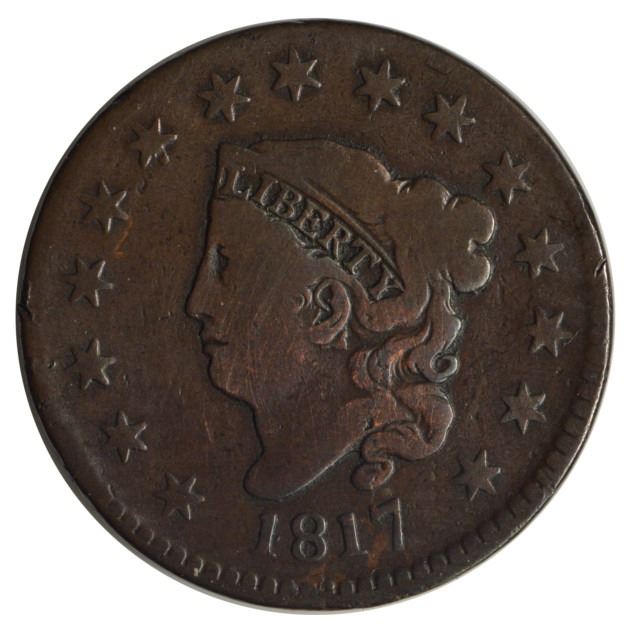 One 1817 Coronet 15 Star Liberty Large Cent.