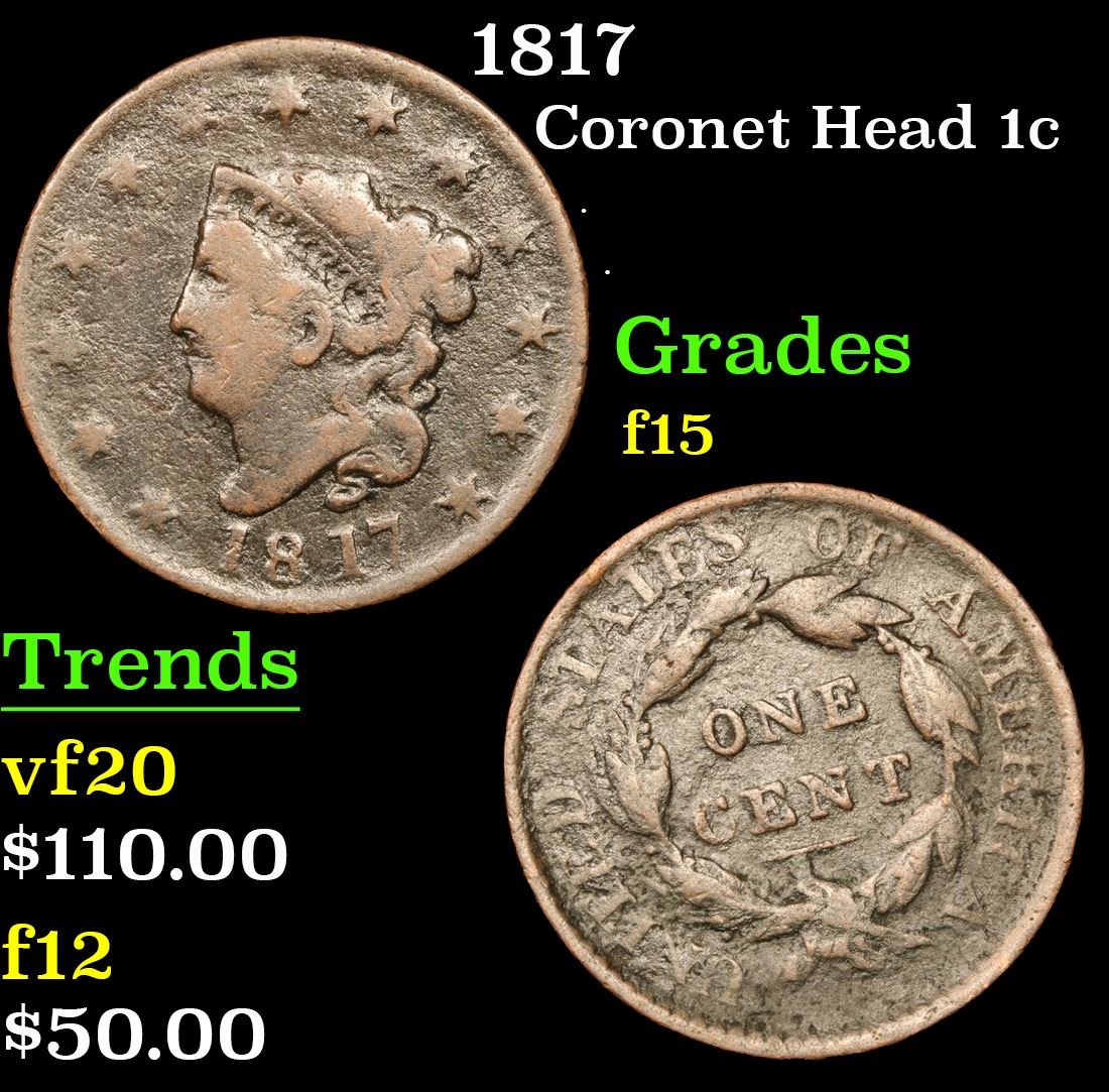 1817 . . Coronet Head Large Cent 1c Grades f+.