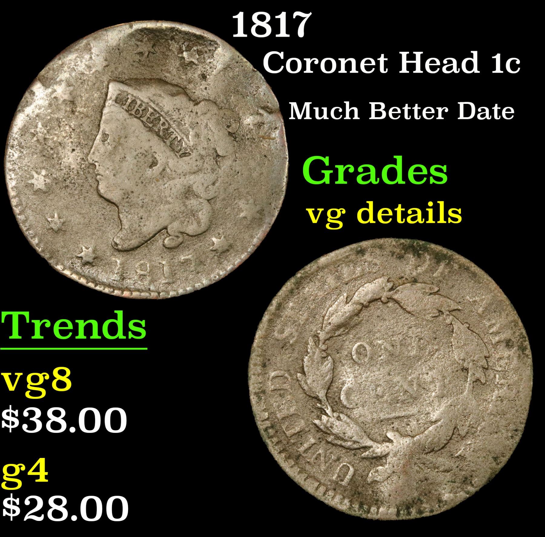 1817 Coronet Head Large Cent 1c Grades vg details. Much Better Date