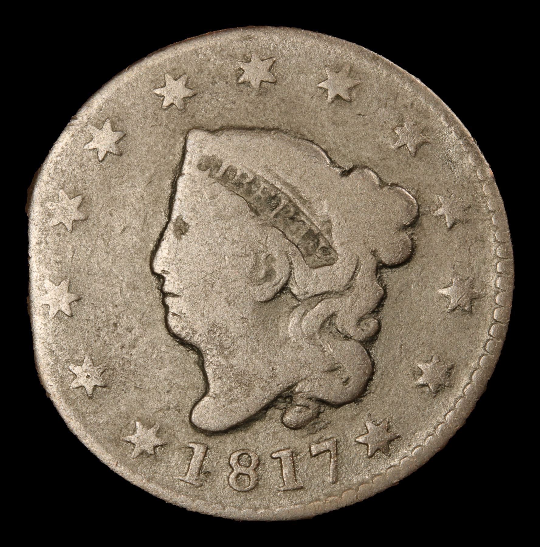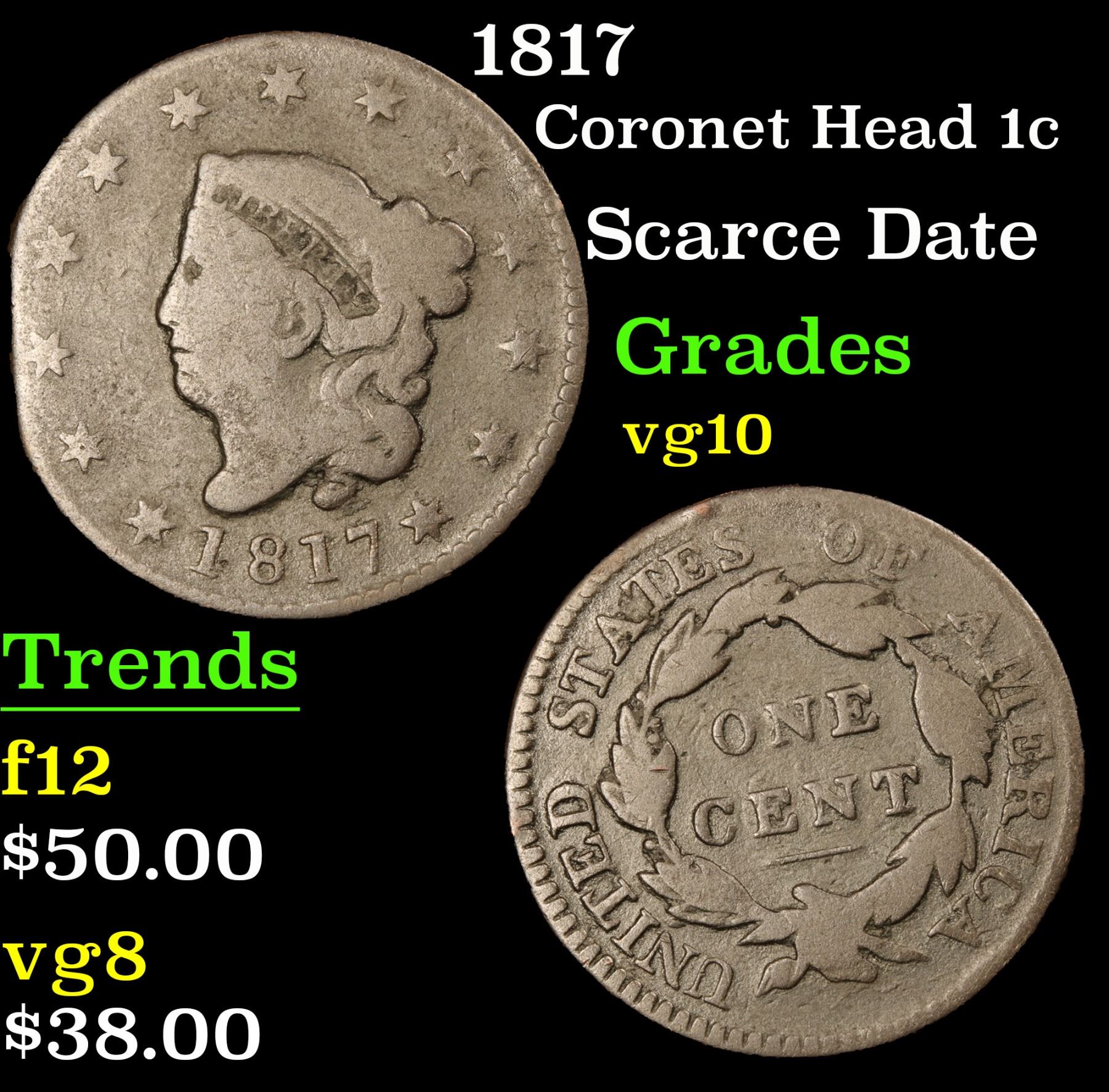 1817 Coronet Head Large Cent 1c Grades vg+. Scarce Date