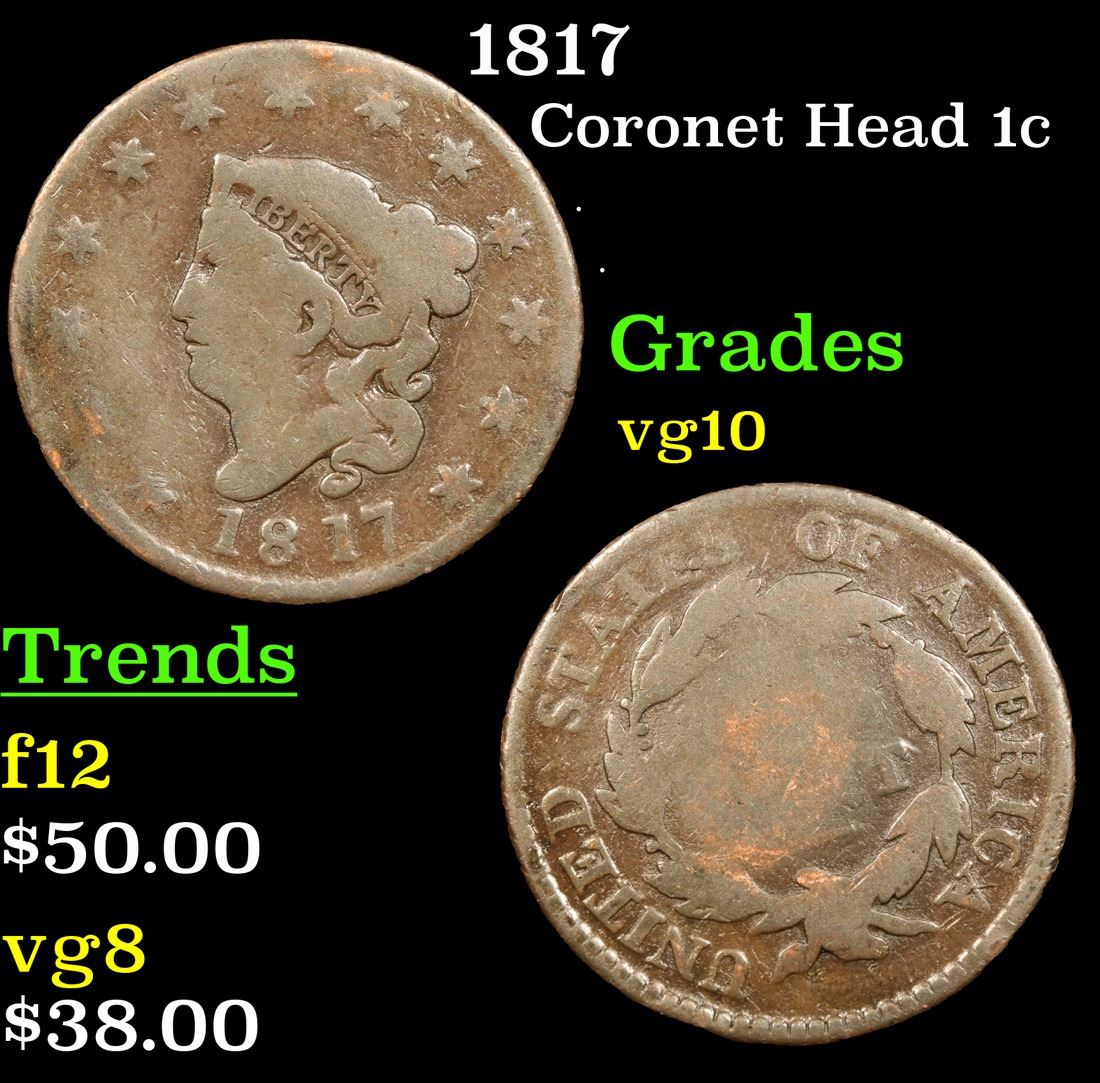 1817 . . Coronet Head Large Cent 1c Grades vg+.