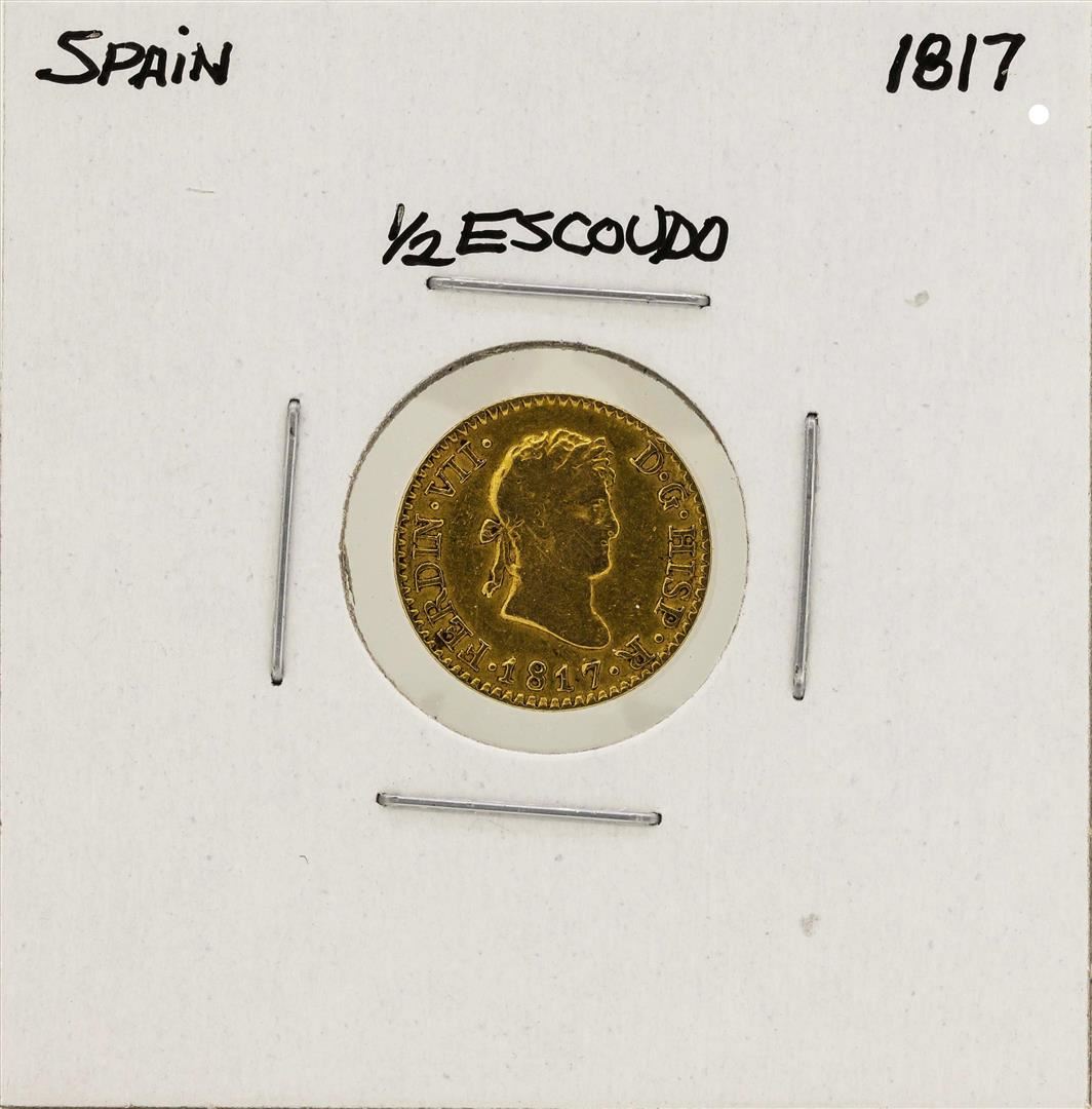 One 1817 Ferdinand VII Spanish 1/2 Escudos Gold Coin.