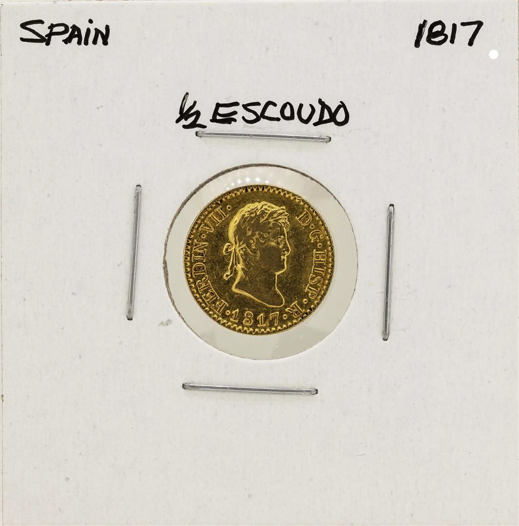 One 1817 Ferdinand VII Spanish 1/2 Escudos Gold Coin.