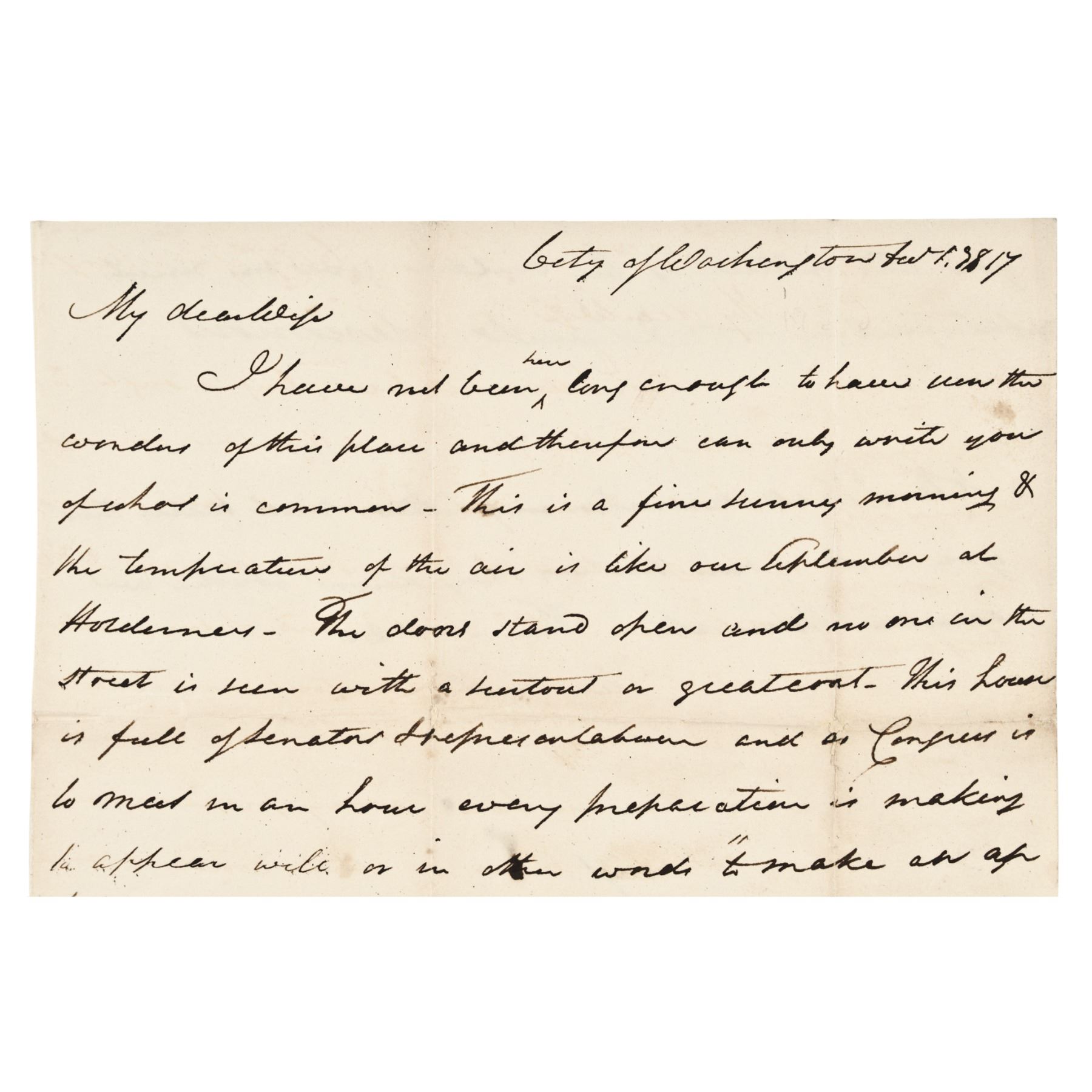 Dec. 1, 1817-Dated, Autograph Letter Signed, by New Hampshire Congressman Arthur Livermore, Washington, D.C., "Slavery is cherished here in the same cradle with liberty," Extremely Fine.