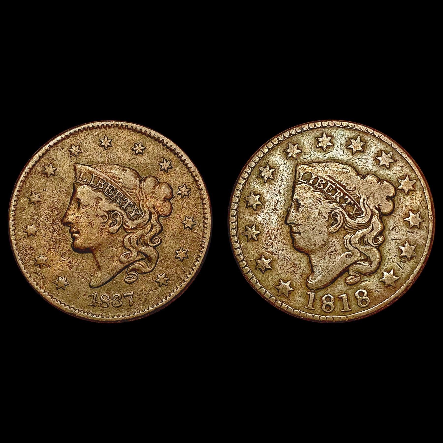 1818, 1837 US Large Cent Collection [2 Coins] LIGHTLY CIRCULATED