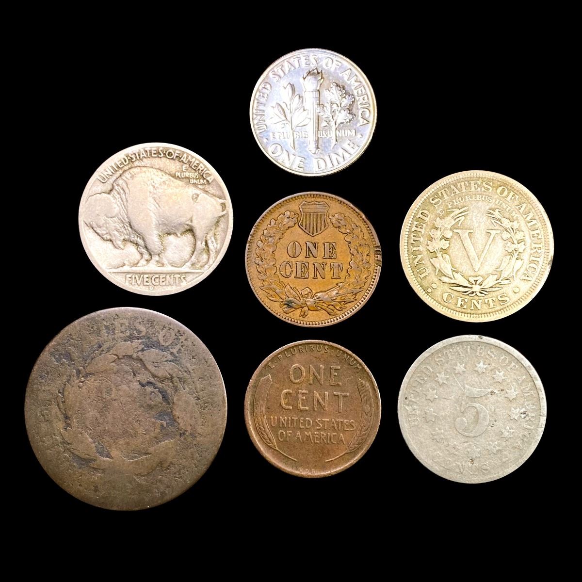 1818-1955 10C Roosevelt,1C Wheat, 5C Victory, 5C