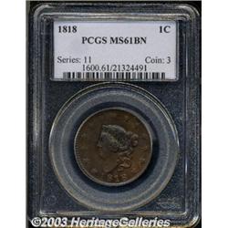 1818 1C MS61 Brown PCGS. N-10, R.1. A popular Randall Hoard variety readily identified by the heavy die crack (as made) throughout the obverse periphery. A nicely struck and refreshingly unabraded Cent with golden-brown and lavender colors. Important notice: Heritage usually auctions material at the rate of 200-250 lots per hour. On some occasions eBay Live bid software or the Internet may not be able to keep up with the pace of the auction. We recommend placing a realistic absentee bid now as insurance to avoid disappointment. Occasionally the auctioneer may eliminate or reject an eBay Live bid, and the auctioneer may also reopen a lot after the close of the eBay live bidding (usually because we missed an audience bid), and may reject your bid even if it shows you as the winning bidder. By bidding via eBay Live, you agree that Heritage may award the lot to another bidder at its sole discretion under the circumstances described above or any other reasonable circumstances. Also please note that all Heritage lots purchased through eBay Live carry a 20% Buyer's Premium. Please make sure you read the Terms and Conditions before you bid.