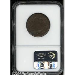 <B>1818<1C> MS63 Brown NGC.</B></I> N-10, R.1. Die State B, cracked through date and stars. Although designated as Brown, this attractive piece offers substantial faded crimson color. A faint spot near the tenth star and a short mark on the neck are all that prevent an even higher grade. <BR><BR><B>Important notice:</B> Heritage usually auctions material at the rate of 200-250 lots per hour. On some occasions eBay Live bid software or the Internet may not be able to keep up with the pace of the auction. We recommend placing a realistic absentee bid now as insurance to avoid disappointment. Occasionally the auctioneer may eliminate or reject an eBay Live bid, and the auctioneer may also reopen a lot after the close of the eBay live bidding (usually because we missed an audience bid), and may reject your bid even if it shows you as the winning bidder. By bidding via eBay Live, you agree that Heritage may award the lot to another bidder at its sole discretion under the circumstances described above or any other reasonable circumstances. Since eBay bids are not shown to us until we open the lot on the floor, we treat those bids just like floor bids. In most cases the floor responds before the eBay bid is presented to us, due to Internet lag time, so for consistency we have made it a policy that floor bids are always considered first over tie eBay live bids. Also please note that all Heritage lots purchased through eBay Live carry a 20% Buyer's Premium. Please make sure you read the Terms and Conditions before you bid.