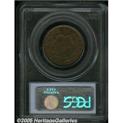 <B>1818 1C MS63 Red and Brown PCGS.</B></I> N-10, R.1. Mint crimson color illuminates protected areas, while the fields have acquired medium olive-brown patina. This nicely struck representative is undisturbed by contact, a few small obverse spots are present and are usual for this familiar Randall Hoard variety. A prominent mint-made die crack traverses the obverse periphery.