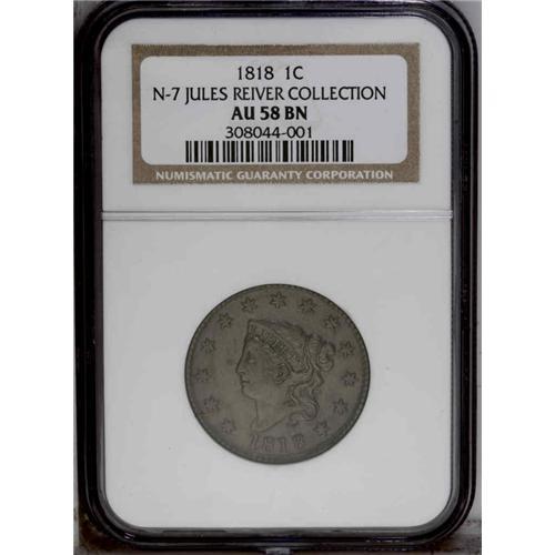 1818 1C N-7, R.1. AU58 NGC. XF45 EAC. Slightly later d 1818[1C] N-7, R.1. AU58 NGC. XF45 EAC.